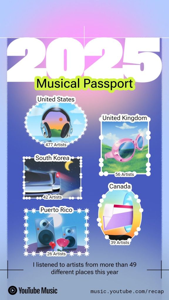 Its that time of the year that I enjoy the most. I love seeing what people listen to the most and what genres they like. I use youtube music and they released a music passport this year, its quite a delight. So this is my wrapped!