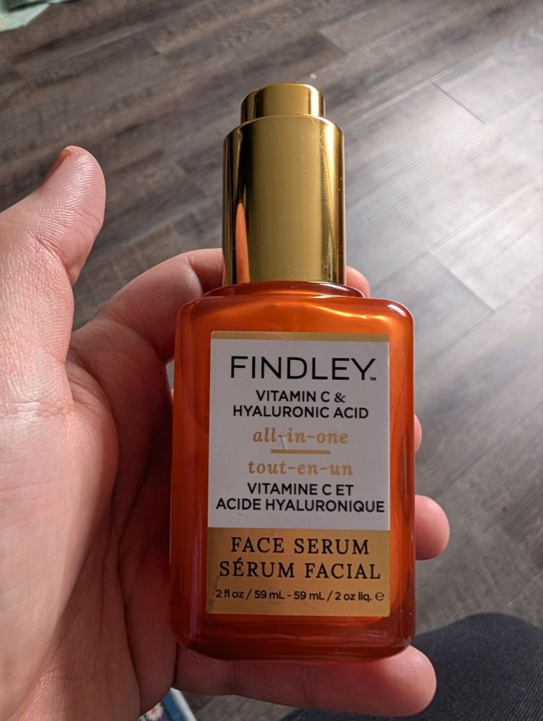 Findley Vitamin C & Hyaluronic Acid All in one Serum: I found this at winner and figured it was worth the $9 it cost to see if it worked with my moistuizer to keep my skin from getting dry longer. Its light but my skin has stayed nicely moisturized for my longer out of the house days.