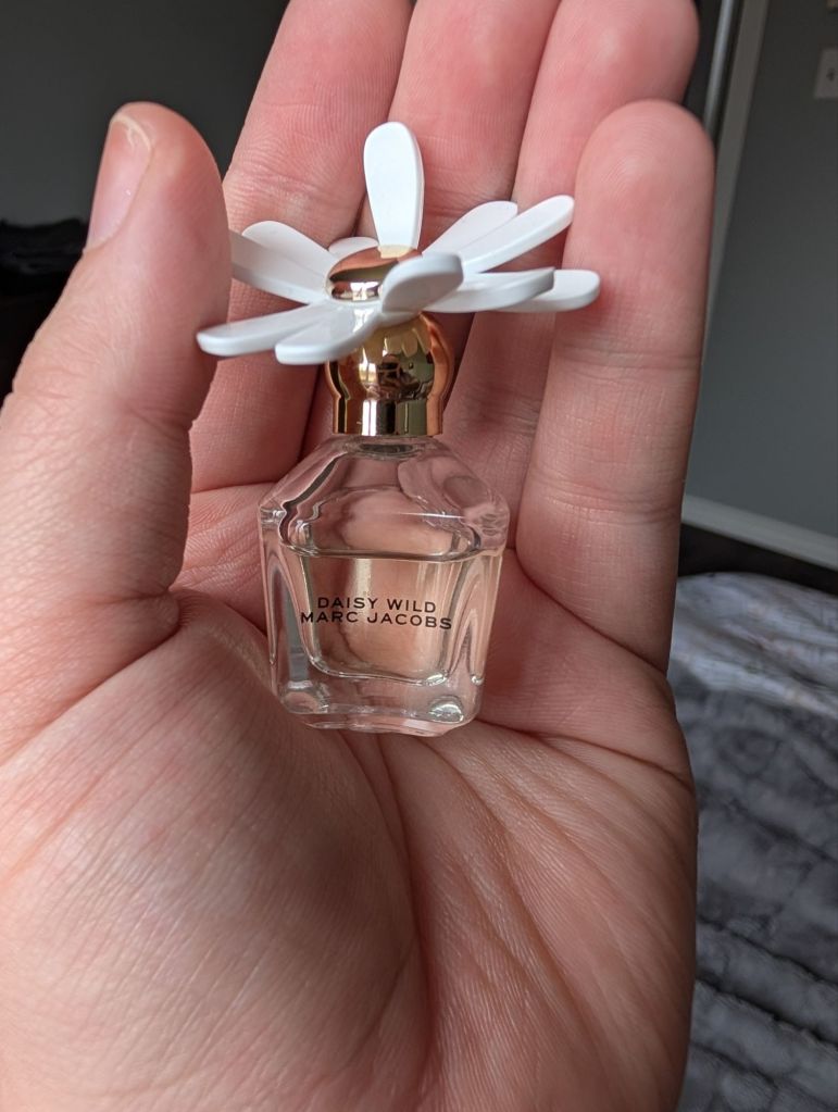 Marc Jacobs Dasiy Wild: I used to use Marc Jacobs so sweet however I got a sample pack of the dasiy scents. I wasnt sure if I would like this one but I’m very much enjoying it. The bigger bottle is quite nice, the flower decorations fit the scent very well.